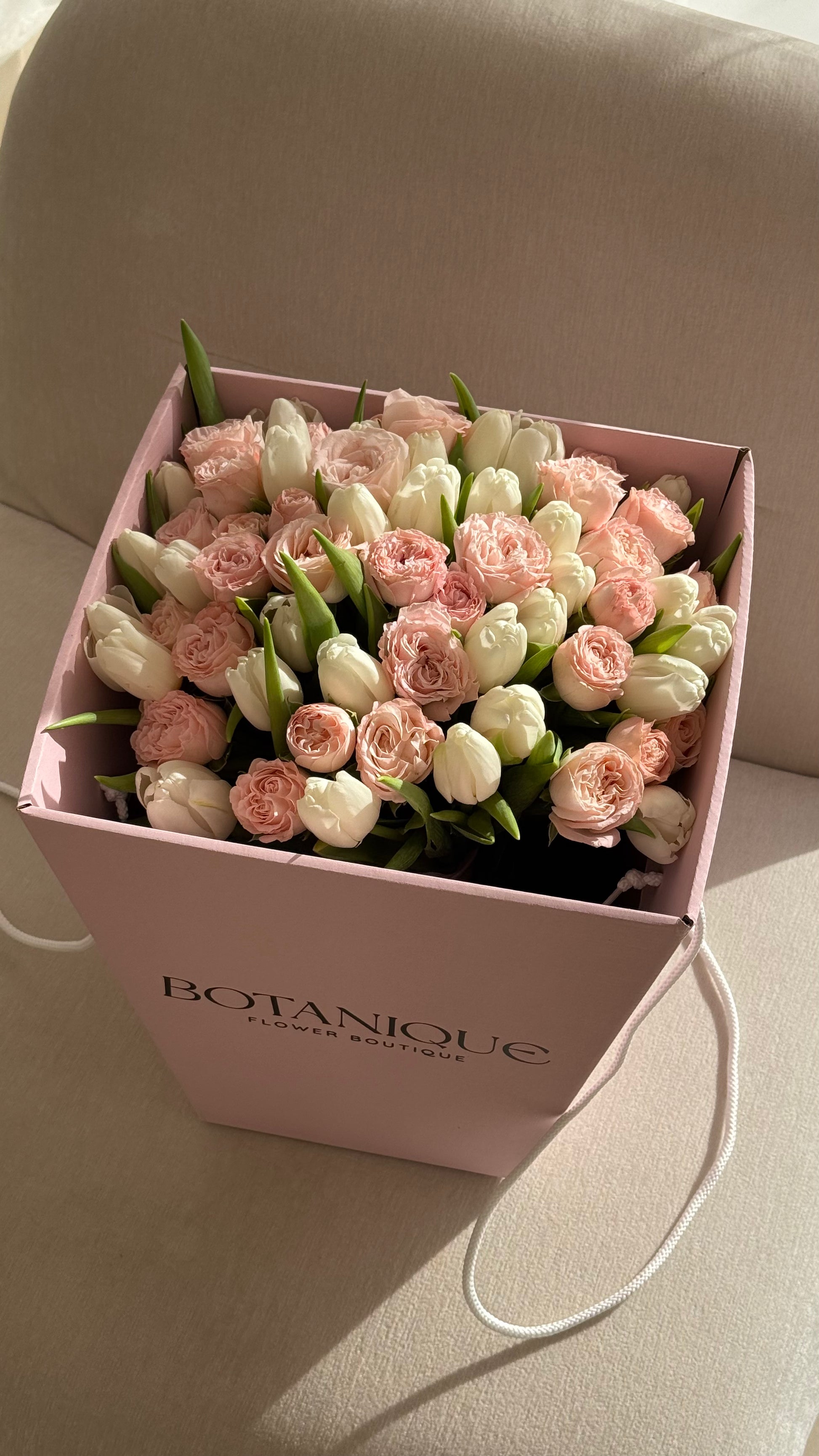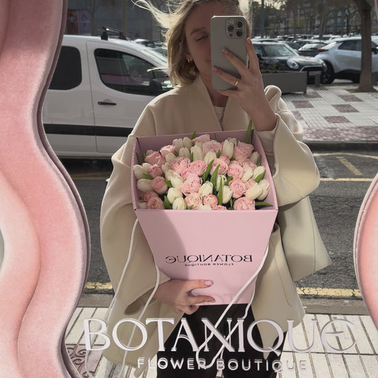 Consist of 25 tulips and 11 spray roses.