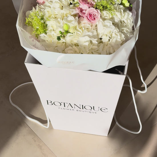 Seasonal flowers can be replaced with similar ones, while maintaining the overall concept and cost of the bouquet.